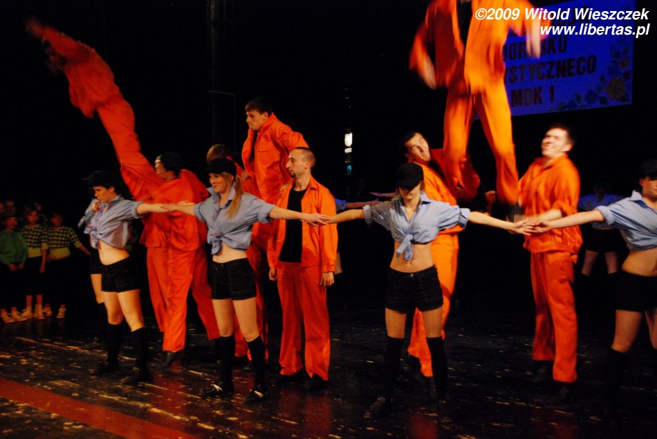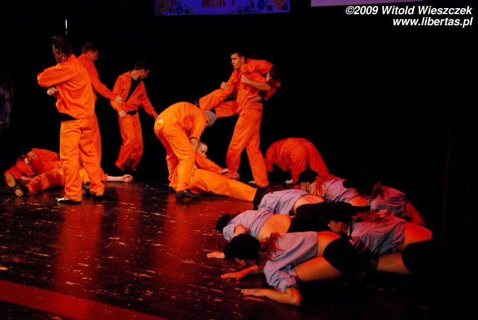 O dziwo z tego raju na ziemi więźniowie próbowali uciec! Nieprawdopodobne... A jednak, chociaż z drugiej strony jakoś im to nie wychodziło, więc może tylko udawali, że uciekają, a tak naprawdę za każdym razem mieli nadzieję, że jednak zostaną złapani? Tak czy inaczej, to już ostatni występ w tym roku. Na scenę wbiegają wszyscy młodzi tancerze, a pani dyrektor dziękuje wszystkim wychowawcom, wychowankom, a także komitetowi rodzicielskiemu.