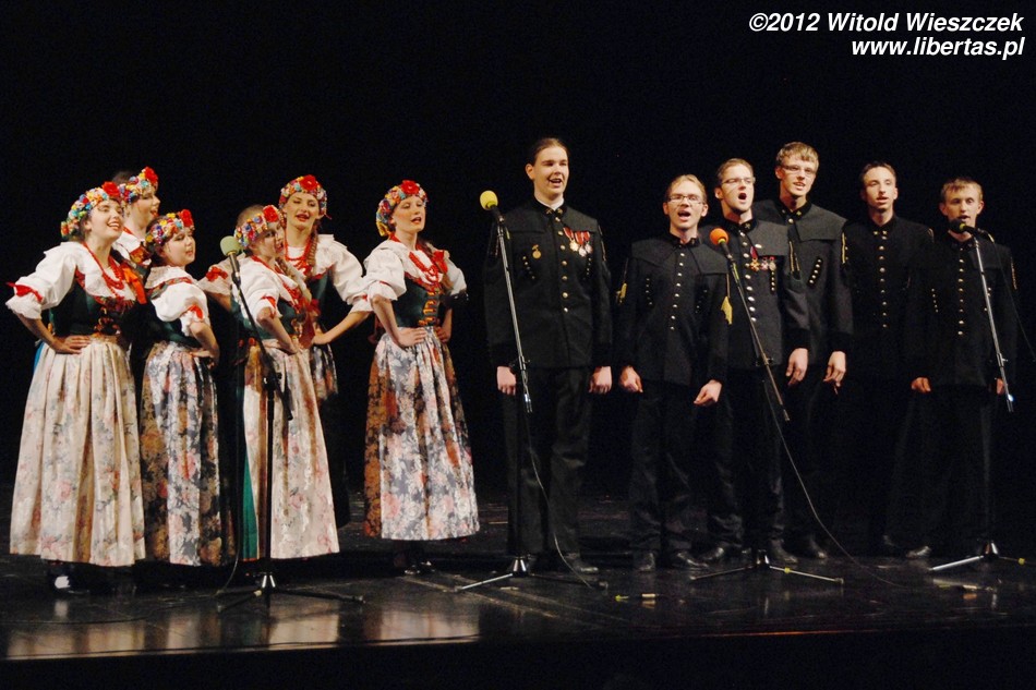 Później nastąpiła całkowita zmiana klimatu, bo na scenie pojawiły się zespoły ludowe. Najpierw prowadzeni przez panią Marię Ławniczek TYSZANIE, którzy zaprezentowali wiązankę pieśni górniczych pod tytułem Idzie górnik drogą. Aż miło było popatrzyć na te kolorowe wianki i wirujące kiecki! Szkoda tylko, że tradycyjne stroje można już zobaczyć tylko podczas takich występów, a nie np. w niedzielę w drodze do kościoła.
