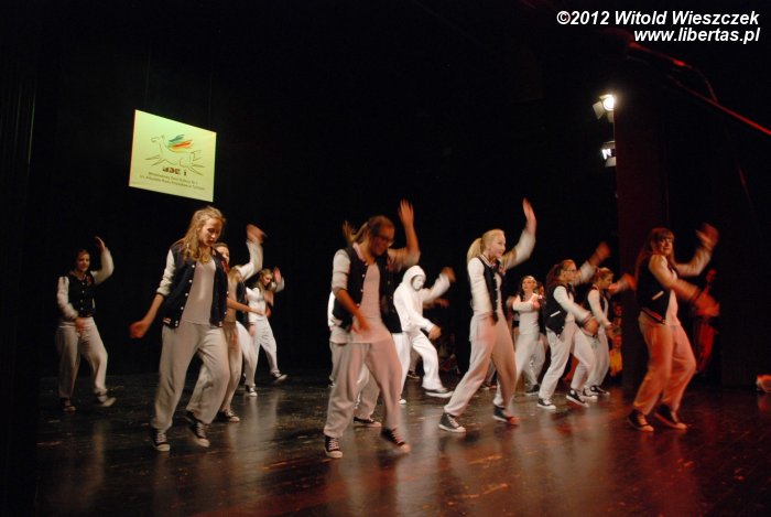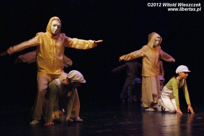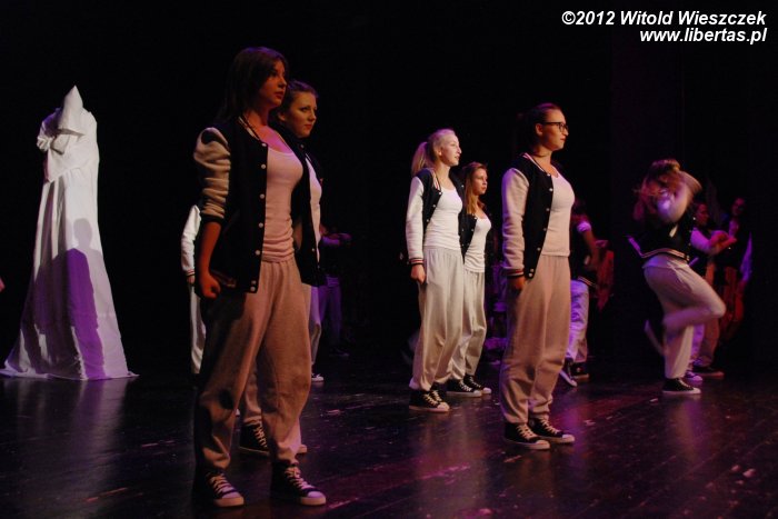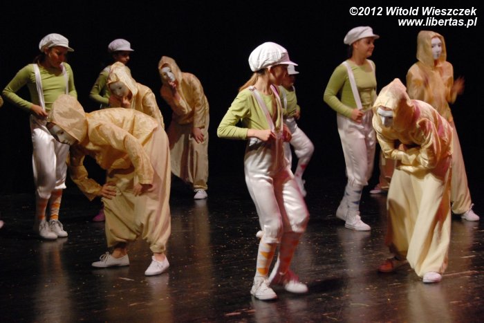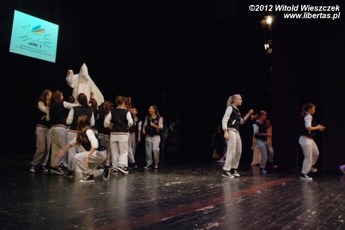 Po występach wokalnych na scenie jeszcze raz zagościły zespoły Piruet oraz Tyszanie, a po nich wystąpiła ostatnia z zaplanowanych na pierwszą część gali grupa – MINI PAKA 2, przedstawiając układ pod tytułem Nazywam się mania, mania wielkości. Sądząc po rozpoczynającym występ Hejnale Mariackim oraz rzucającej się w oczy wysokiej białej postaci przypominającej trochę Białą Damę, akcja tego ostatniego już występu rozgrywała się w Krakowie. Cóż, zaczęło się od polskiej wsi, potem byliśmy w Chinach, ale najwyraźniej wszystkie drogi i tak prowadzą do Krakowa! Na marginesie już niedługo, bo w dniach 5-8 lipca odbędzie się tam Festiwal Teatrów Ulicznych na który wszystkich zapraszam.