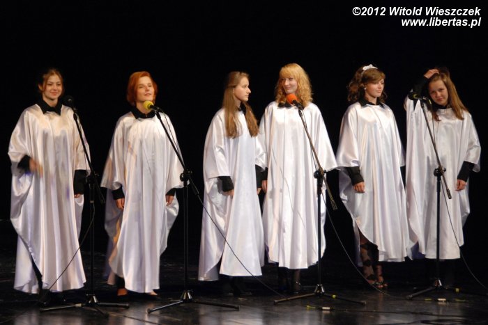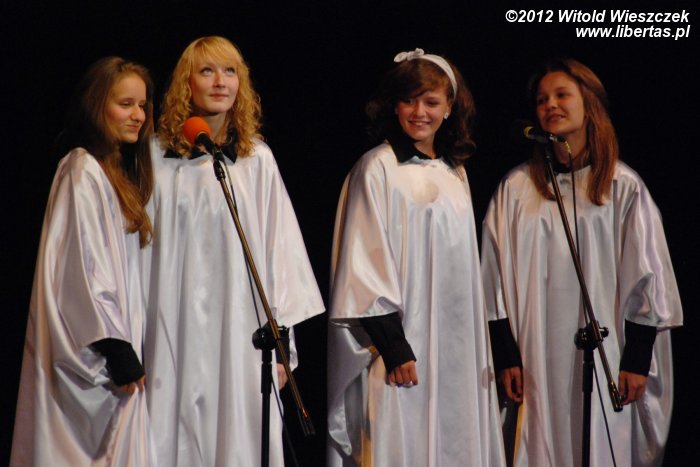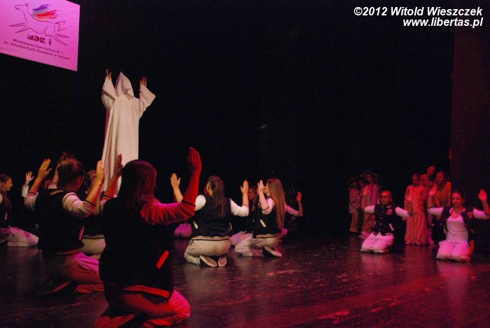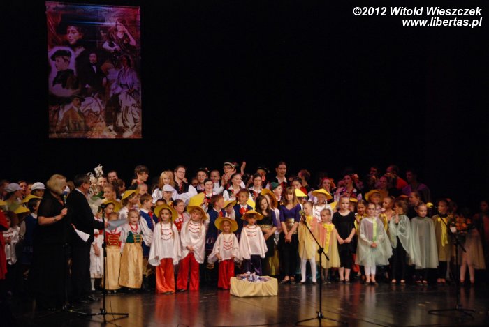 Na pożegnanie na scenę jeszcze raz wyszli wszyscy młodzi artyści, by odśpiewać hymn Młodzieżowego Domu Kultury i przyjąć kosz pełen słodyczy. W ten oto sposób pierwsza część gali Anno Domini 2012 dobiegła końca.