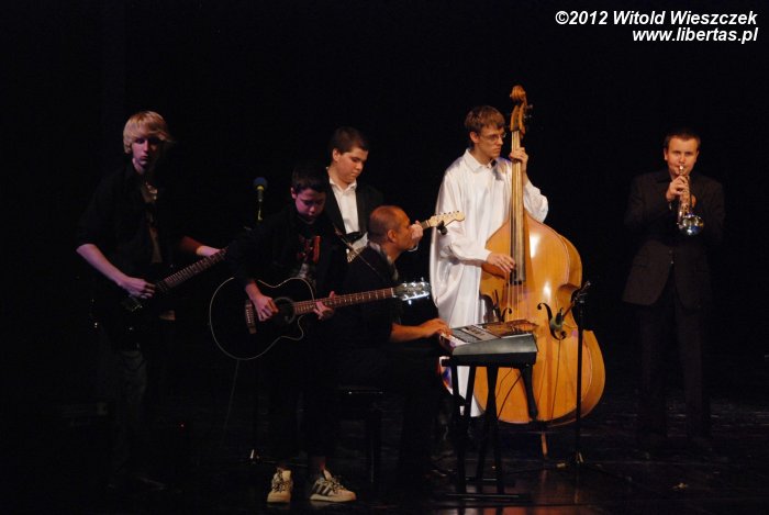Bardzo przyjemny przerywnik muzyczny zafundowały nam dwa zespoły o zbliżonym składzie prowadzone przez pana Rafała Białasa: TON FORMACJA oraz COLLAGE. Pierwszy zagrał klasyczny kawałek Beatlesów Come Together oraz Kiełbie we łbie z repertuaru Mietka Szcześniaka. Drugi: Dobrze jest Natalii Grosiak i Moje serce Mariki. Młodym muzykom może i przytrafiały się drobne potknięcia, może nie zawsze było równo i czysto, ale mimo to występ na pewno można uznać za udany. Przygotowany materiał przyjemnie wszystkich rozkołysał, a bardzo sugestywnie zaśpiewana ostatnia piosenka rozpaliła pewnie niejednego fana sekcji wokalnej. Przede wszystkim jednak przed samą sceną można było zauważyć tańczące spontanicznie dzieci, co jest chyba najbardziej miarodajną oceną wystawioną zespołowi.