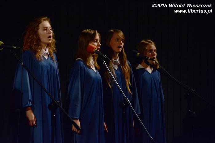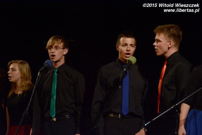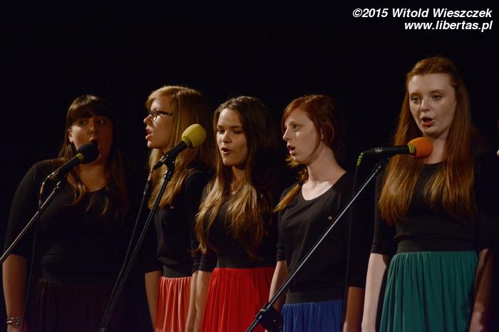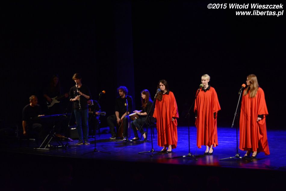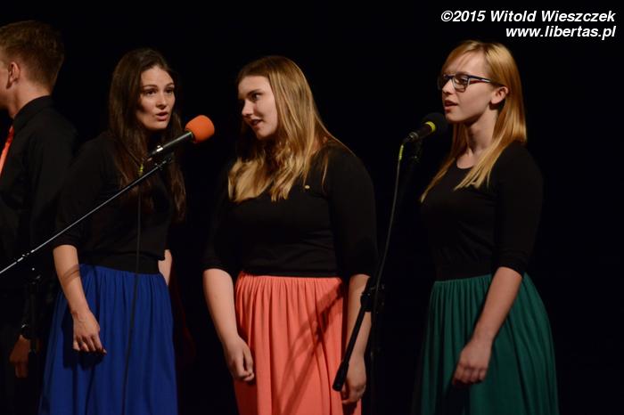 No i kolejny przerywnik muzyczny, tym razem w wykonaniu grupy Collage, którą opiekuje się Rafał Białas. Collage to trzy wokalistki oraz – uwaga! – aż siedmiu muzyków, dzięki czemu zespół jest – można powiedzieć – samowystarczalny i radzi sobie bez żadnych muzycznych podkładów. Jest przez to również zdecydowanie bardziej interesujący, zwłaszcza dzięki brzmieniu klarnetu i cajonu. Tym razem z okazji dorocznej gali Collage przygotował dwa utwory: „With a little help from my friends” i „Czasem”.