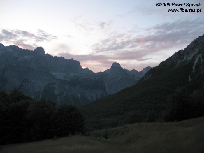 Albańczycy poprowadzili ładnie oznakowany szlak z Thethi do... zakładamy, że do samej Valbony, za co jednak nie mogę ręczyć głową, gdyż nasza grupa nim nie szła. A zachód słońca nad Przeklętymi piękny, i ta cisza... cudowne uczucie.