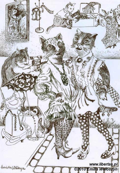oceń / komentujREWIA MODY Przymierzały kotki ciuszki: Suknie, chusty, półkożuszki. Pantofelki i pończoszki W różnokolorowe groszki. Przeglądały się w lusterkach, Buszowały po kuferkach. Korale i bransolety Ozdabiały toalety. Fryzury miały szałowe - Kraszarawe, czarne, płowe. Ogony ondulowane, A wąsiki pozłacane. Kiedy już się wystroiły, Rewię mody urządziły. W idealnie zgranym szyku Przechadzały po chodniku. Ach, odniosły sukces wielki, Światowej sławy modelki! Paparazzo zrobił fotki ... Czego nie wiedziały kotki. Regina Nachacz