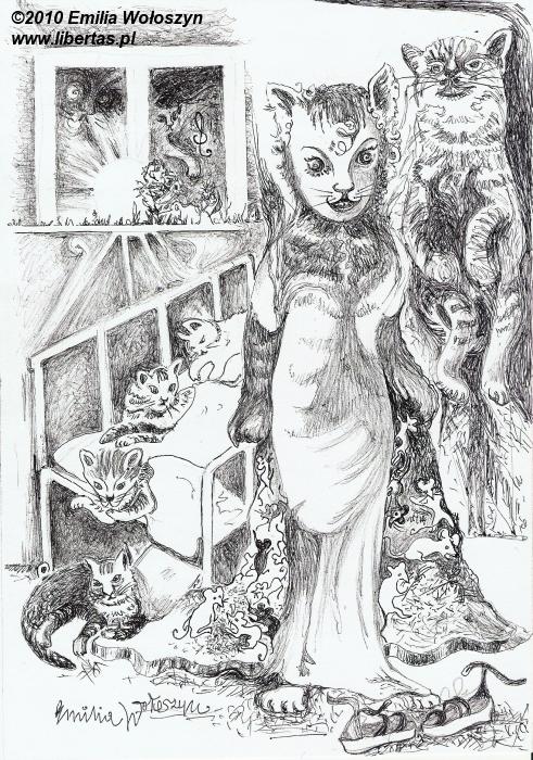 oceń / komentujWODZIREJKA Leżały koty w szpitalu, Rozbitki po wielkim balu. Głaskały bolące brzuszki; Cierpiały obite nóżki. Tańczyły koty walczyki W takt egzotycznej muzyki. Pojadły jak nigdy w życiu I rozkoszowały w piciu. Szalały tak dwa tygodnie, Z fantazją, miło i zgodnie. Śpiewały same szlagiery. Takie to bły przechery. Wśród pań królowała kotka - Słodka mamrotka, kokotka. Tak się łasiła, mruczała, Że kocie łby zabełtała. O nią się koty pobiły ... Zszargały futra i siły. A kotka się wybawiła, Przecież wodzirejką była. Regina Nachacz