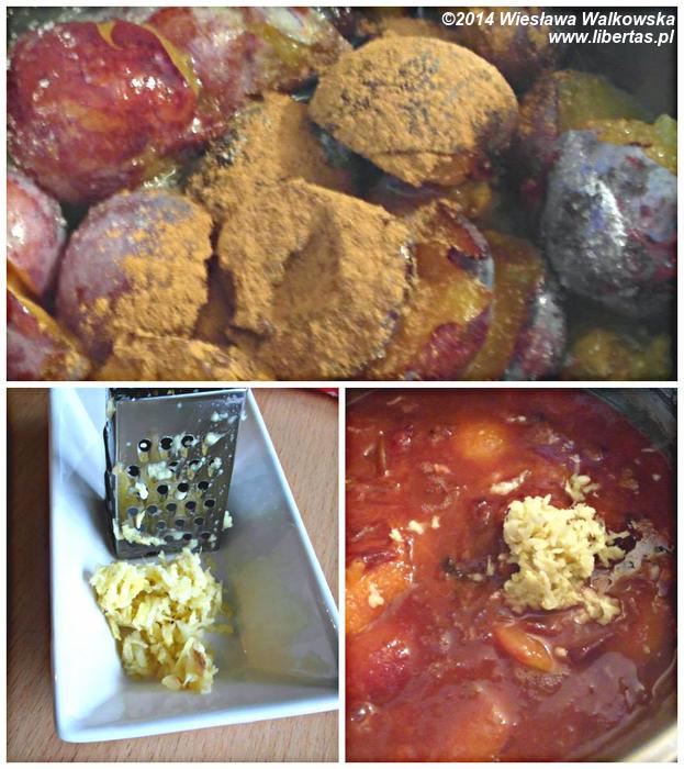 Zetrzyj imbir na tarce, a następnie dodaj wszystkie składniki do garnka i duś pod przykryciem przez około 30–35 minut, co jakiś czas mieszając. Następnie zmiksuj masę śliwkową blenderem i ponownie zagotuj.