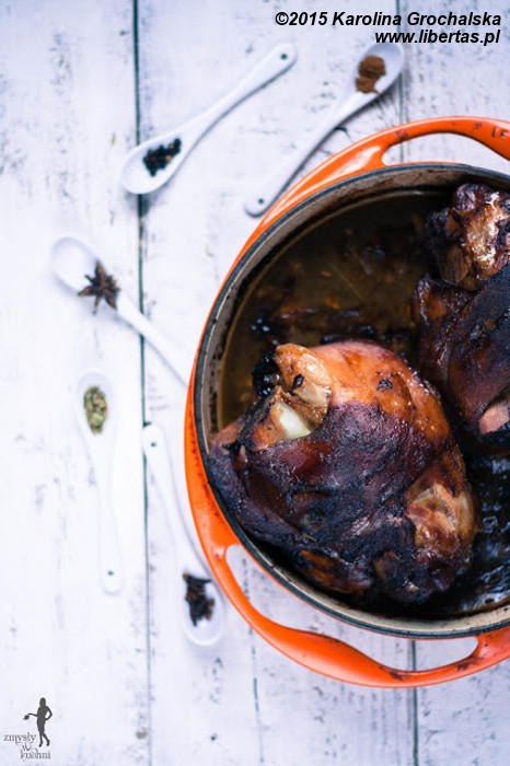 Tym razem u mnie golonka z przyprawą Pięć Smaków, pieczona długo i w niskiej temperaturze. Rozpływa się w ustach, jest aromatyczna i nie wymaga wcześniejszego obgotowywania.