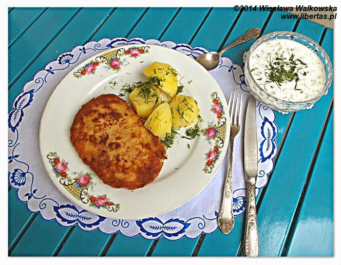 Schabowy koniecznie musiał mieć dwie panierki – z mąki i bułki tartej, następnie zanurzony w jajku z dodatkiem mleka. Pamiętam z dzieciństwa schabowego bardzo równo uformowanego, bowiem po obtoczeniu go w końcowej panierce, czyli bułce tartej, mama delikatnie nożem dociskała brzegi, pozbawiając go „strzępiastości”. Schabowego z dzieciństwa przypominam sobie podawanego z mizerią, buraczkami, kapustą zasmażaną lub surówką. Jedno wiem, schabowego nigdy nie podawało się z kluskami śląskimi.