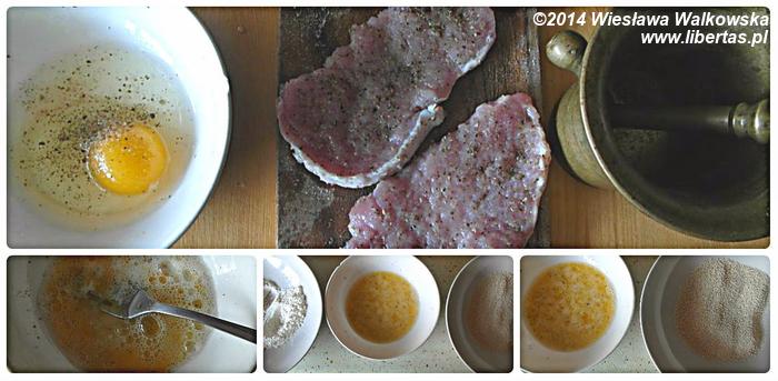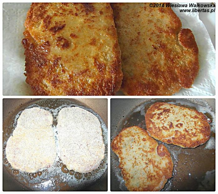 Ja też czasem robię schabowego. Kiedy staram się go „odtłuścić” robię tylko jeden rodzaj panierki, czyli jajko i bułka tarta. Zdarzyło mi się też „zanurzyć” mięso w jogurcie z dodatkiem mleka i w bułce tartej z dodatkiem otrąb. Muszę przyznać, że taki schabowy był równie przedni.