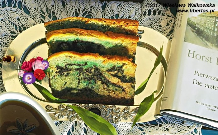 No ale do rzeczy. Tym razem chciałabym mój malowniczy region przybliżyć wizualnie-kulinarnie, a wybór padł na śląską babkę, którą się piekło w każdym śląskim domu. Napisałam „mój malowniczy region”, bo chociaż w tle zawsze widziałam kopalnie, szyby kopalniane i hałdy, to jednak obok tego zawsze było dużo zieleni, pagórków, lasów, mniejszych i większych zagajników czy kwiatów, które musiały być obok każdego domu. Baby śląskie występują w różnych wersjach, ale skoro ma być kulinarnie-wizualnie, to moja słodka babka nawiązuje do malowniczości miejsca, w którym się urodziłam i wychowałam. Patrząc na to ciasto, widzę zieleń lasów, pola złocistych zbóż, w tle kopalnie i rysy, które one robiły na śląskich budynkach i śląskiej ziemi. Mam wrażenie, patrząc na to ciasto, że jest to mapa fizyczna mojego regionu, a że praca tu była zawsze ciężka i w pocie czoła, to trochę słodyczy się przyda.