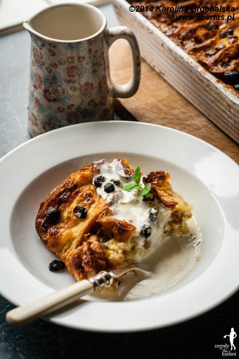 Dziś w ramach godzenia zwaśnionych narodów mam tradycyjny brytyjski pudding chlebowy z francuskim akcentem, a nawet i z dodatkiem szkockiej mocy! To dopiero wybuchowa mieszanka. Ale smakuje rewelacyjnie, uwierzcie mi. Tradycyjnie pudding chlebowy wykorzystuje czerstwe pieczywo, ja dziś prezentuję wersję lux z croissantami, ale upewnijcie się przed wykonaniem tego deseru, że są to takie 2–3 dniowe rogale.