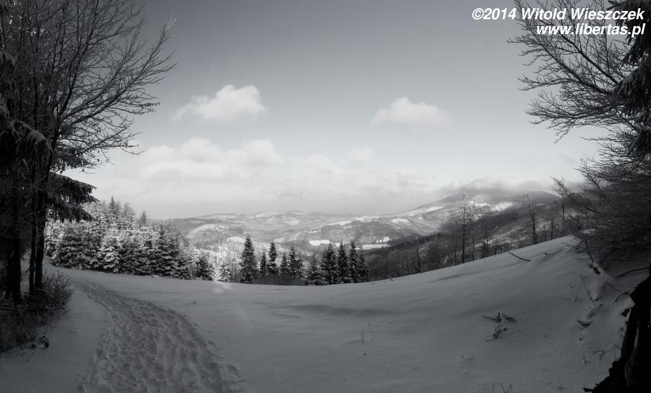 Beskidy chyba najbardziej ukochałem sobie zimą i właśnie do zimowej wycieczki będę tym razem zachęcał. Biel świeżego śniegu dodaje górom niezaprzeczalnego uroku i magii, a cisza i spokój czyni wędrówkę wręcz mistycznym przeżyciem. Jeśli dodamy do tego, że o tej porze roku mniej jest tu turystów przypadkowych, a czasem zdarza się wręcz, że szlak jest zupełnie pusty, to chyba większej motywacji nie trzeba. Oczywiście ten sam śnieg, który góry tak pięknie dekoruje, może nas spowalniać, a zimowe dni są znacznie krótsze, więc warto ze sobą zabrać zdrowy rozsądek. Jeśli jednak już jakieś pojęcie o chodzeniu po górach macie, to opisana tu trasa będzie idealna na szybki spontaniczny górski wypad (w dwóch wersjach).