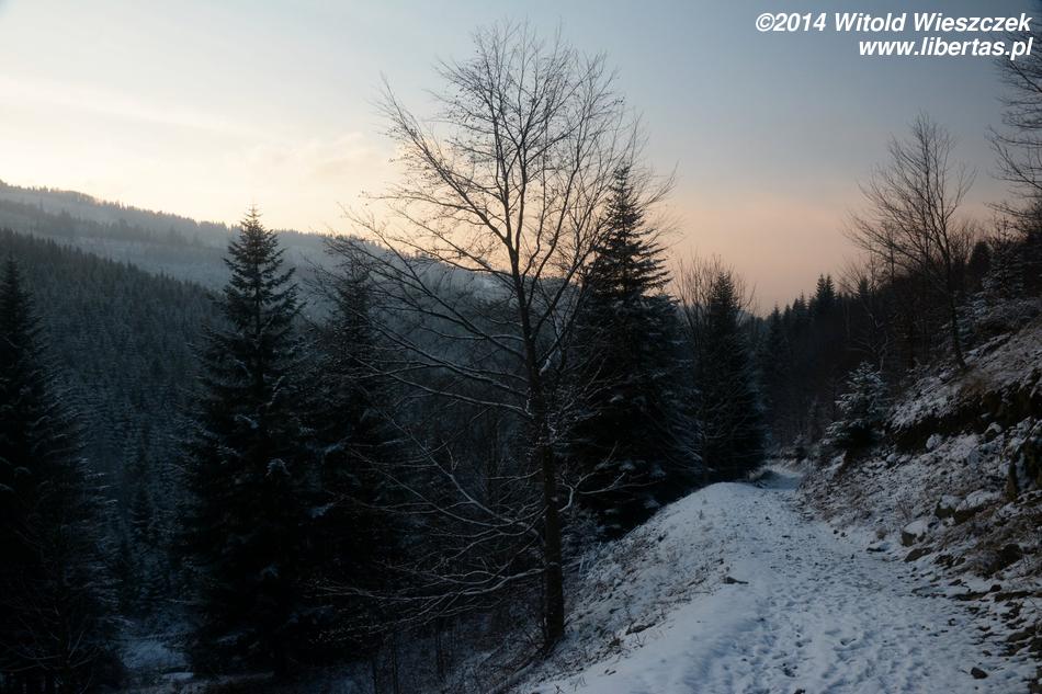 Już pierwsza część wycieczki jest bardzo atrakcyjna widokowo, ponieważ dość szybko nabieramy wysokości i z każdą chwilą możemy się cieszyć coraz ładniejszymi górskimi krajobrazami, które zwłaszcza zimą prezentują się naprawdę fantastycznie. Gruba pokrywa białego puchu skutecznie zakrywa całą ziemię, a śnieżne nawisy i kryształki lodu niczym świąteczne ozdoby przyozdabiają mijane drzewa. Jeśli trafimy na dobrą pogodę, to widoki i przyjemność spacerowania w tych okolicznościach wynagrodzą nam z nawiązką wszelkie zimowe niedogodności.