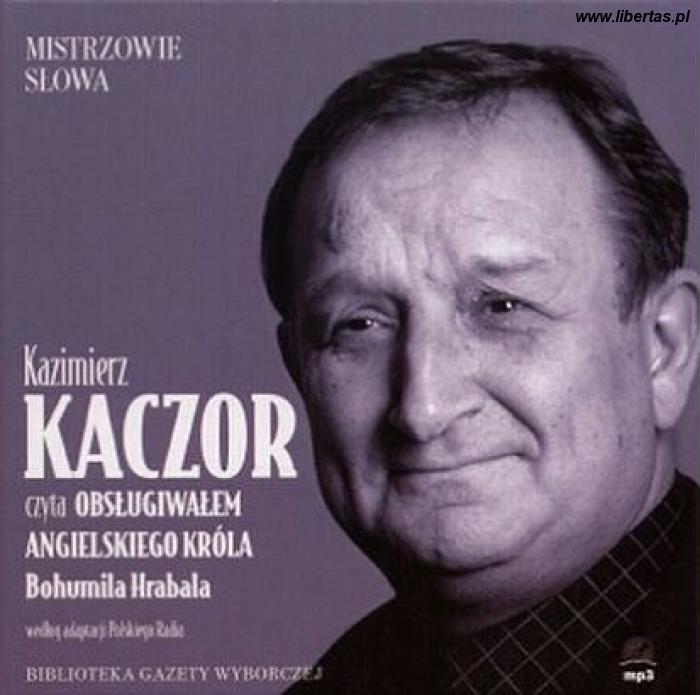 Bohumil Hrabal to kolejna pisarska ikona, która została mi podsunięta w schyłkowych latach PRL-u przez mojego intelektualnego i moralnego Mistrza. Ikona, która nie miała nic wspólnego z liceum. Rzecz jasna Hrabal nie był i pewnie teraz też nie jest lekturą szkolną. I jakoś nie był czytany przez licealistów. Żaden z nauczycieli również nie miał ochoty napomknąć o wartościach pisarstwa czeskiego autora. Ponad dwadzieścia lat temu nosiłem przy sobie „Postrzyżyny” i „Taką piękną żałobę”. A że wówczas nie potrafiłem dostrzec w tych opowiadaniach poezji, smutku, zawikłanych losów czeskiego przedwojnia i pierwszych lat komunizmu, bawiłem się jedynie tą niesamowitą zdolnością Hrabala do przedstawiania spraw okropnych w sposób zabawny, rubaszny. Gdy zaczęto Hrabala wydawać na nowo po 1989 roku sprawiłem sobie kilka jego książek, których nie znałem. Do nich należy „Obsługiwałem angielskiego króla”. Nie pamiętam pierwszych wrażeń z lektury. Teraz jednak muszę przyznać, że ta krótka powieść plasuje się w pierwszej trójce moich ulubionych książek tego autora. Jaki medal przyznać? Gdyby wziąć pod uwagę piękne, w twardej okładce wydanie Państwowego Instytutu Wydawniczego z 1990r. oraz wersję audiobookową wydaną przez Bibliotekę Gazety Wyborczej serii „Mistrzowie Słowa”, to byłoby złoto. Złoto w dwójnasób, bezkonkurencyjnie daje wykonanie Kazimierza Kaczora. Przewracam kartki audiobookowej książeczki. Czytam, że owo wykonanie jest według adaptacji Polskiego Radia z 1989r. Tłumaczy to ten czysty, jasny, wyraźny głos lektora, który w tymże roku miał 48 lat. Prawie nie bywam w teatrze. To źle. Ale poniekąd zrozumiałe. Wiadomo, drobnomieszczaństwo, prowincja. Najbliższy teatr jest oddalony od domku o około dziewięćdziesiąt kilometrów. I nie jest to scena w jednej z polskich aglomeracji. Jednak pamiętając atmosferę desek, po których kroczą aktorzy, pamiętając głos roznoszący się od sceny w kierunku widowni, widzę oczami wyobraźni Kaczora, który wypowiada kolejne fragmenty tekstu z Hrabala. Dlaczego tak to sobie wyobrażam? Bo po raz pierwszy od chwili, gdy mam możliwość słuchania książek przez słuchawki mojego małego, fikuśnego odtwarzacza mp3, dotarł do mnie głos wykonawcy oddający tekst tak bez wysiłku, tak swobodnie. Właśnie jak z desek teatralnej sceny. I jak to w teatrze, bądź w operze, dobór aktora do roli nie koniecznie musi być uzależniony od wieku odtwórcy i granej postaci. Pewną dowolność, swoistą sceniczną licentia poetica narzuca wizja reżyserska bądź aktorska wartość. Tak się dzieje z Kazimierzem Kaczorem. „Ile masz lat, chłopczyku, skończyłeś już czternaście? Kiedy?”. Chłopiec usługujący w hotelu czy restauracji to pikolak. Od włoskiego „piccolo”, czyli mały. „Jesteś tu za pikolaka”. Pomimo tego, że hrabalowski bohater jest nikczemnej postury, nie mógł mieć więcej lat niż uprawniające go do roli hotelowego boya. Ale absolutnie od pierwszych słów interpretacja znakomitego aktora nie sprawia, że słuchacz mógłby poczuć, choć odrobinę dyskomfortu z tego powodu. Wiemy, zatem kto jest bohaterem. A narracja prowadzona jest w pierwszej osobie, przez bohatera. Lektor bardzo naturalnie, nie siląc się na intonowanie chłopięcego głosu, nie zmieniając tembru do końca wykonania, chociaż narratorowi przybywa lat, prowadzi słuchacza przez ten raczej teatr radiowy niż zwykłe czytanie książki. Stąd i to wrażenie, że Kazimierz Kaczor wypowiada dłuższą aktorską kwestię na scenie, bądź siedząc na krześle w świetle reflektorów jest gwiazdą monodramu, teatru jednego aktora. Ale, ale! Czy kogokolwiek raziły u teatralnych aktorów drobne pomyłki, chrząknięcia, przełknięcia śliny? Nigdy w życiu, prawda? Dodaje to pewnego wyrazu aktorstwu, właśnie tej naturalności i swobody. Tak się właśnie słucha Kaczora. Czasami, gdy w trakcie czytania, przypominałem sobie, że autorem jest Bohumil Hrabal, pojawiał się wyimaginowany obraz pisarza opowiadającego o życiu Jana Hredeczke, siedzącego przy kuflu pilzneńskiego piwa w praskiej piwiarni na przykład U Fleků, chociaż chyba to była raczej gospoda U Zlatého Tygra, tak ważna dla niego, jak dla Jarosława Haszka U Kalicha. Tak właśnie czyta Kaczor, jak na scenie, jak w piwiarni, jak w słuchowisku przed radiowym mikrofonem.
