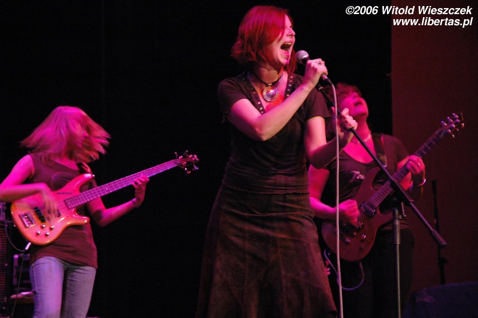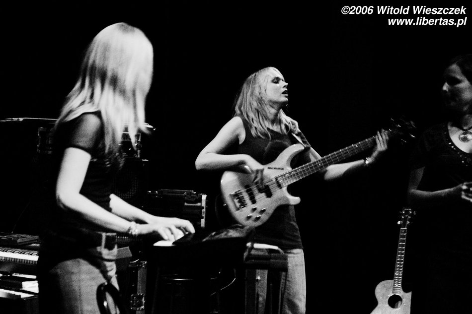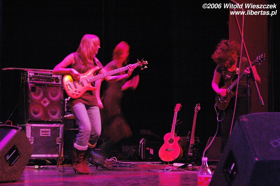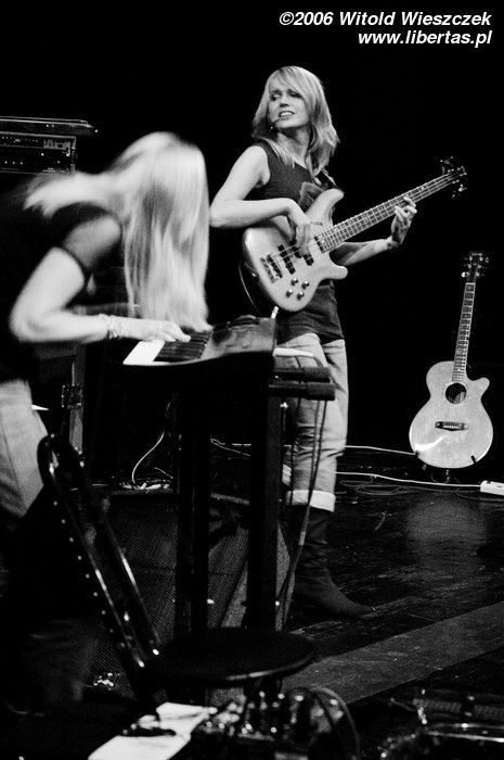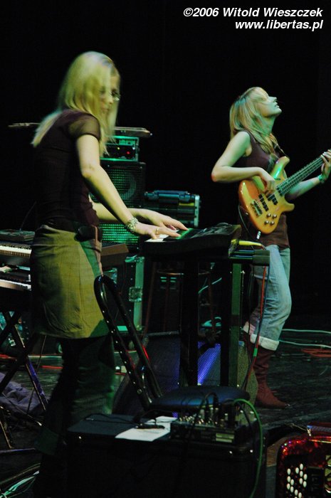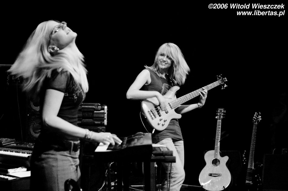 Na instrumentach klawiszowych grała sobie kolejna urocza blondyneczka – Justyna Mądrzak. Zza perkusji było widać zaledwie czoło, więc o jej właścicielce kompletnie nic nie potrafię powiedzieć, a szkoda, bo chętnie bym poznał dziewczynę, która ma dość siły, żeby grzmocić po garach. W każdym razie ta tajemnicza ukryta istota zwie się Żaneta Seweryn.