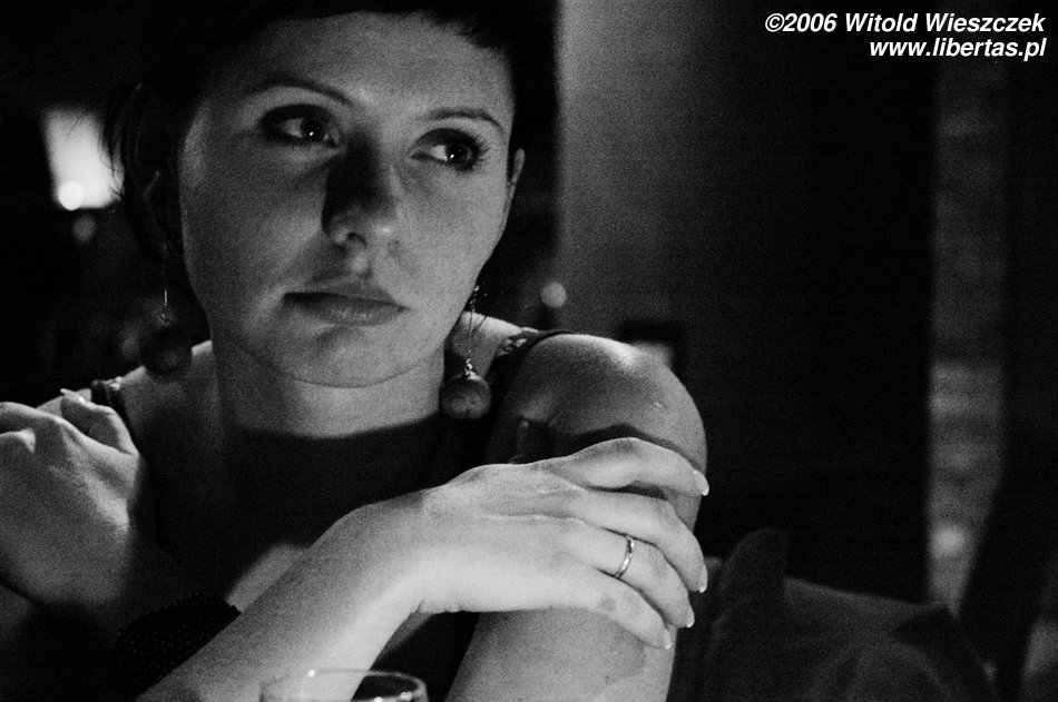 W wersji „na żywo” jest jeszcze piękniejsza niż w telewizji. Pierwsze skojarzenie, jakie miałem, to z Edytą Geppert, a to z racji czarnego stroju, może tylko w trochę bardziej niespokojnym stylu. Czarna bluzka przechodziła płynnie w długą czarną spódnicę zakończoną ciężkimi czarnymi butami. Czasem wychodziły na światło reflektorów łydki przewiązane długimi czarnymi sznurówkami. A ja bardzo lubię czarny kolor...