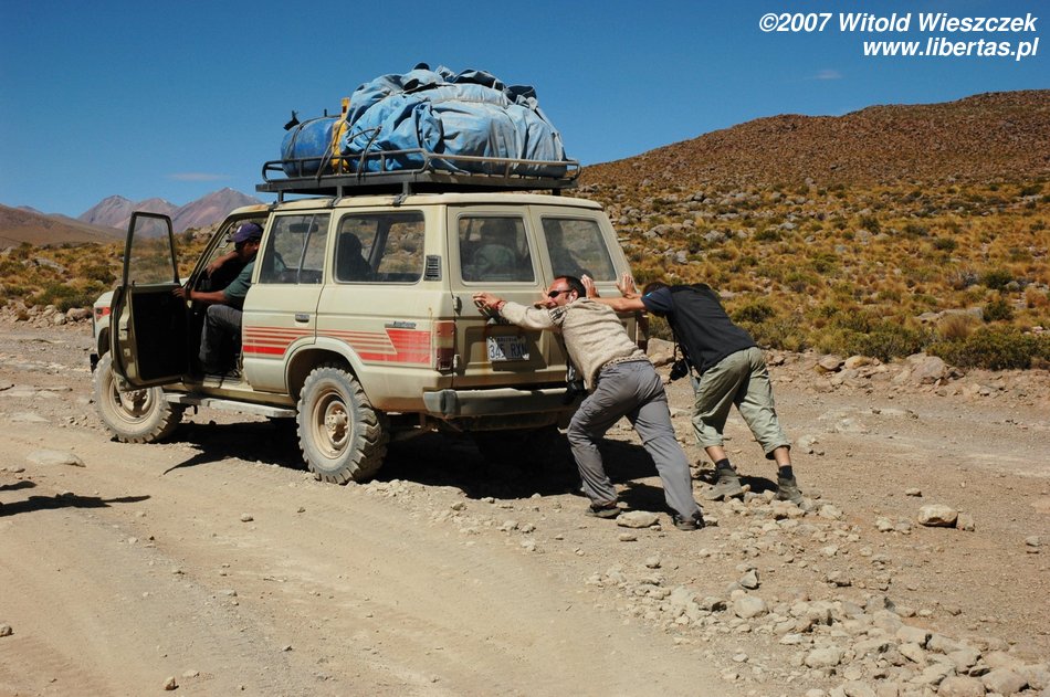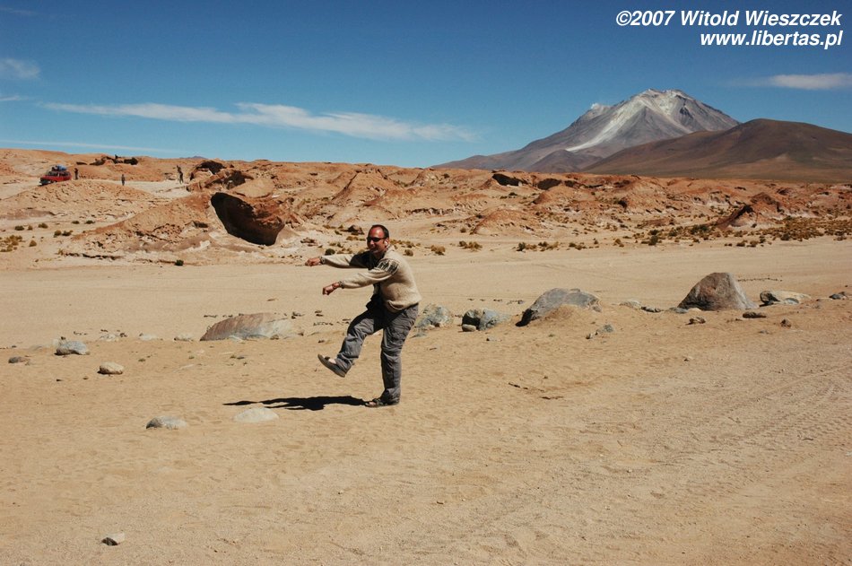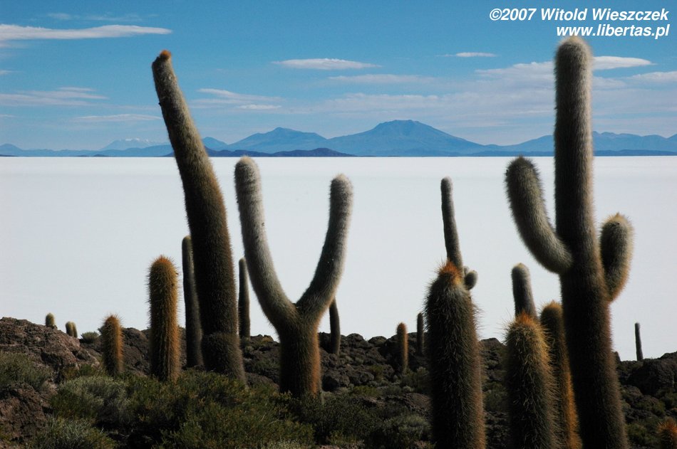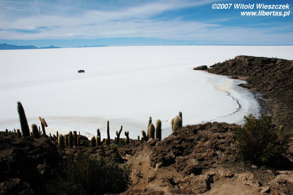 Not long after we drove on Salar de Uyuni (Bolivia), the largest salt-shaker in the world:) – it occupies 10,582 square kilometers and includes around 10 billion tons of salt! It lies on Altiplano at 3653 amsl and just like Titicaca (64 zdjęcia) is a remain of existing in Pleistocene lake Ballivian. It is one of the flattest areas in the world - the difference between heights is not even 41 cm!