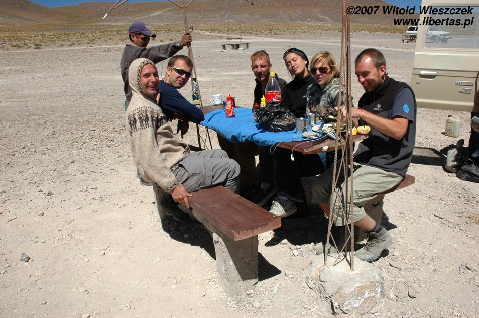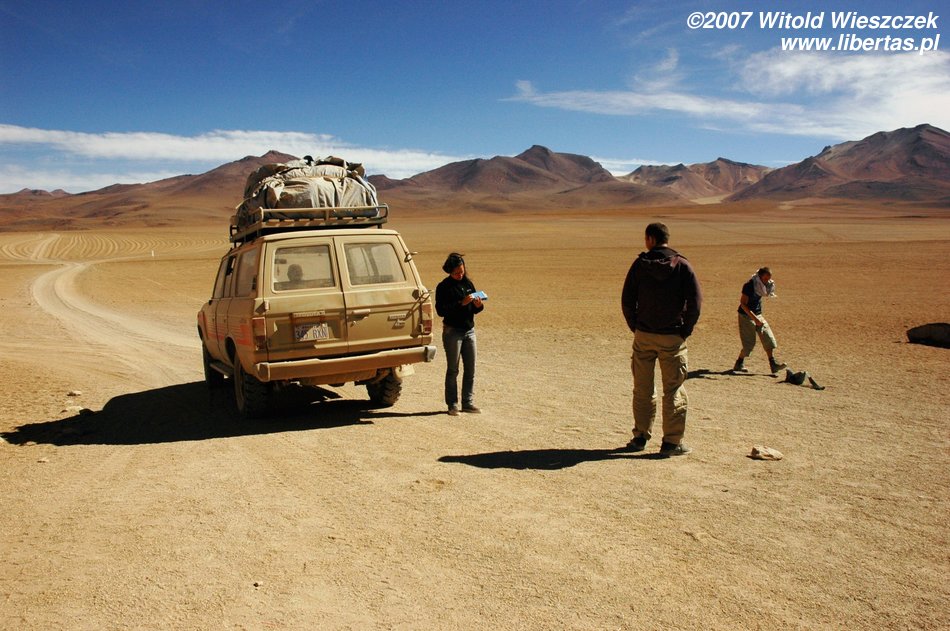 Early in the morning we reached Uyuni (Bolivia), here we had over an hour for eating breakfast and refilling our supplies:). Next we packed into a jeep and ventured forth.