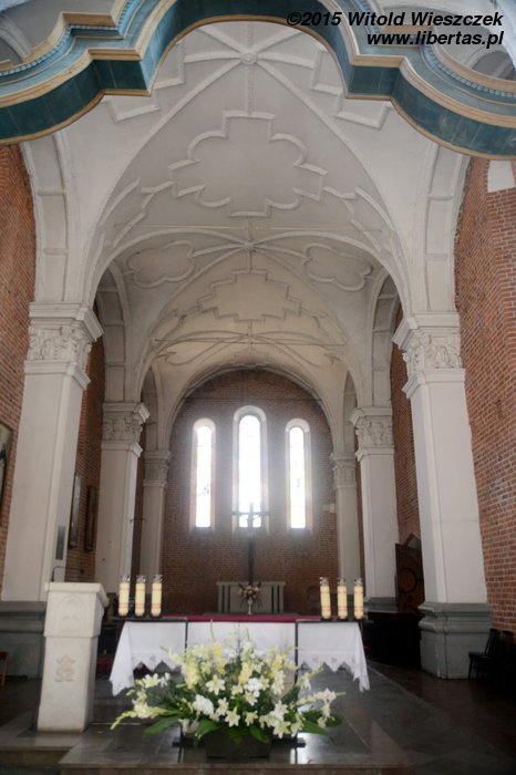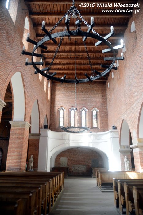 Do kościoła wchodzimy poprzez piękny, dwudzielny perspektywiczny portal. Prawdopodobnie jako pierwsze (1226–1236) zostało wybudowane prezbiterium, a następnie trójnawowy korpus kościoła. Masywne ceglane ściany o ostrołukowych arkadach międzynawowych wsparto na kwadratowych filarach.