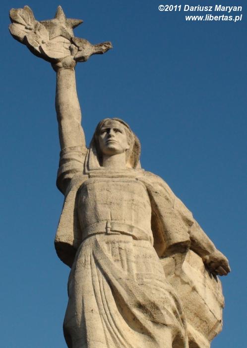 Ostatnim punktem zwiedzania miała być wizyta pod pomnikiem Matki Albanii, który to wg zapewnień przewodnika miał znajdować się w parku. Jednak po obejściu go wzdłuż i wszerz, na co zeszły nam dobre dwie godziny nigdzie na niego nie natrafiliśmy. Pomoc miejscowych tylko wprowadzała większy chaos. Zrezygnowani powoli zataczając wielkie koło po peryferiach parku zaczęliśmy powoli wracać do miasta. Gdy obeszliśmy już całe jezioro, po przeciwnej stronie mignął mi mały biały punkcik. Gołym okiem nie można było dostrzec, co to jest, więc dokręciliśmy do alfy teleobiektyw i na maksymalnym zumie zrobiłem zdjęcie. Następnie przy maksymalnym zbliżeniu, ujrzałem cel naszych poszukiwań. Pokaźnych rozmiarów kobietę z czymś, co przypominało kałacha w ręku. Oceniwszy dystans w linii prostej wyszło mi kilka kilometrów. Było już popołudnie a tego dnia jeszcze trzeba się było przygotować do wyjazdu, jednak po trzech godzinach poszukiwania w końcu nawiązałem kontakt wzrokowy z naszym ostatnim celem. A ponieważ bardzo rzadko nie potrafię odnaleźć jakiegoś wcześniej wytypowanego obiektu, postanowiłem zawrócić i mimo wszystko dojść do celu. Ela o dziwo zgodziła się na tą przeprawę, choć pewnie wolałaby już wracać do hotelu.