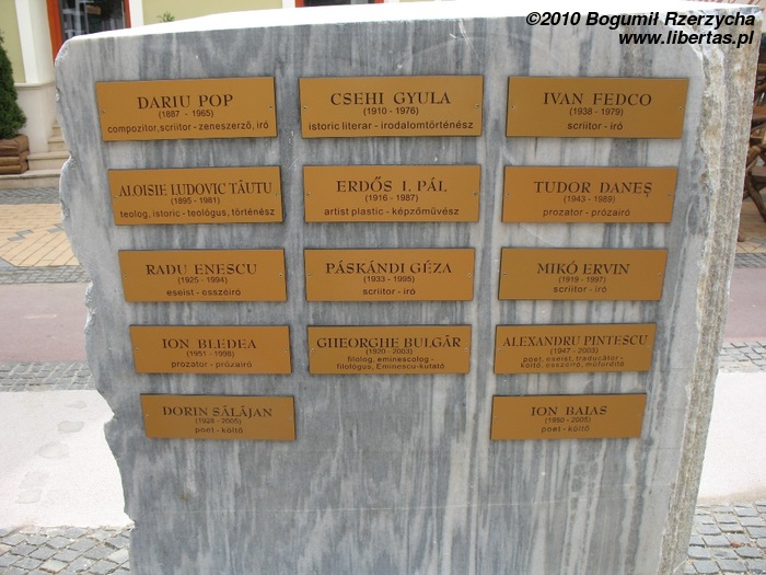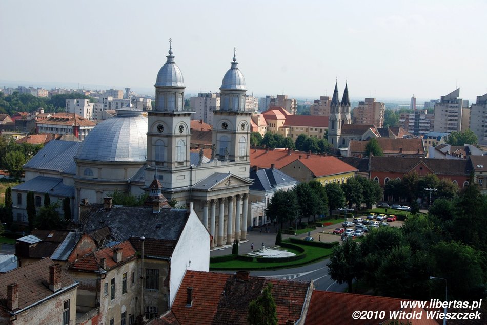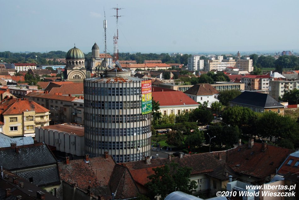 Najciekawsze zabytki znajdują się w okolicach Placu Wolności (Piaţa Libertăţii), pośrodku którego znajduje się mały park z alejkami, ławeczkami i dużą fontanną. Podczas sierpniowego upału kilka minut odpoczynku w takim miejscu może być rozkoszą! Spacerując po parku bez trudu powinniśmy zauważyć wybudowany w 1902 roku secesyjny hotel Dacia. Podobno jeszcze piękniejszy jest w środku, niestety trwał remont i nie udało nam się bliżej mu przyjrzeć.