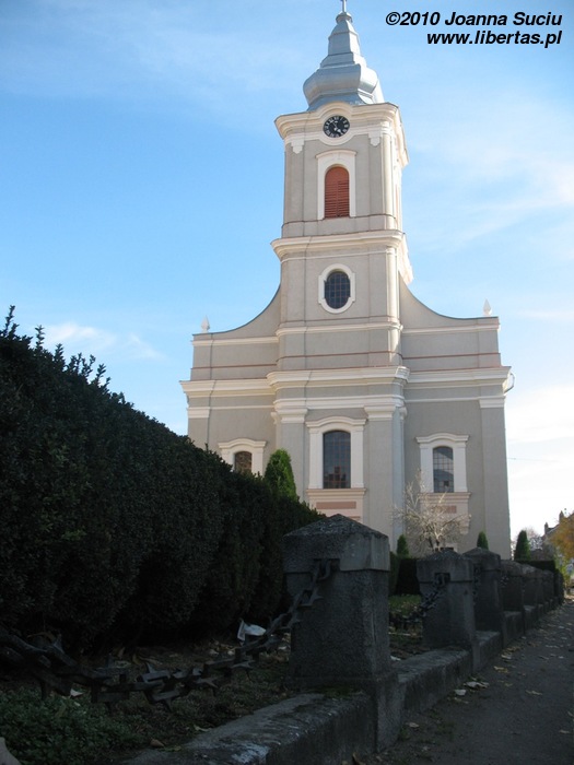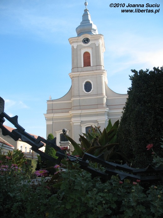 Kawałek dalej, przy Placu Pokoju (Piaţa Păcii), znajduje się kościół ewangelicki potocznie zwany Kościołem z Łańcuchami. Otacza go rząd małych kolumn między którymi przeciągnięto ciężki łańcuch - stąd nazwa. Kościół zbudowano pod koniec XVIII wieku w stylu barokowym. Na wieży znajduje się najstarszy, pochodzący z roku 1633, dzwon w Satu Mare. Drewniane meble wykonał w latach 1799-1807 Frits Joseph.