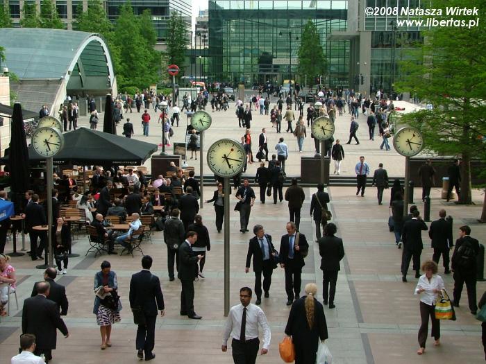 Idziemy w miasto. Jak mówią londyńskie metro – to drugie oblicze tego miasta. Nigdzie nie ma takiej szansy obcowania z tak różnorodną populacją jak w metrze właśnie. Wszystkie możliwe kolory i odcienie skóry. Wyznania religijne. Nie wspomnę o stylach ubierania – tam każdy jest do bólu sobą. Nie spotka się dwóch podobnie ubranych dziewcząt. Najbardziej kolorowa oczywiście jest młodzież EMO. Nie mogłam oderwać wzroku od tych wylansowanych chłopców. Aż by się chciało mieć znowu 17 lat... Pamiętam co się wtedy działo w mojej głowie jak przyjeżdżałam do Krakowa i przeżywałam fascynacje młodzieżą wystającą pod pomnikiem Mickiewicza, przecież bym umarła z nadmiaru wrażeń w tym Londynie... tu jest WSZYSTKO. Przypuszczalnie każdy najdziwniejszy i najbardziej odległy zakątek świata ma tu swego reprezentanta. Londyn – jedno z najbardziej kosmopolitycznych miejsc świata.