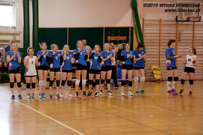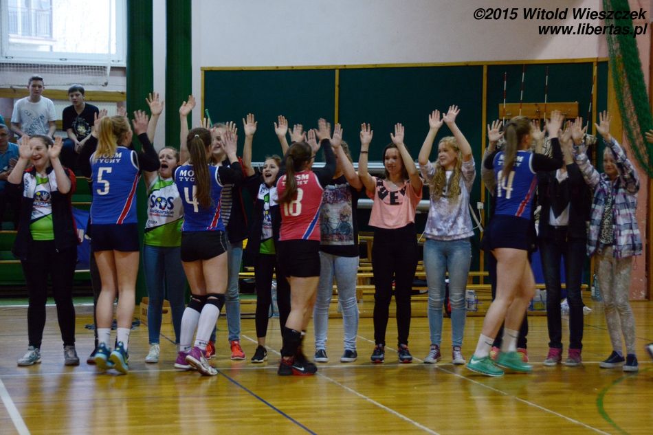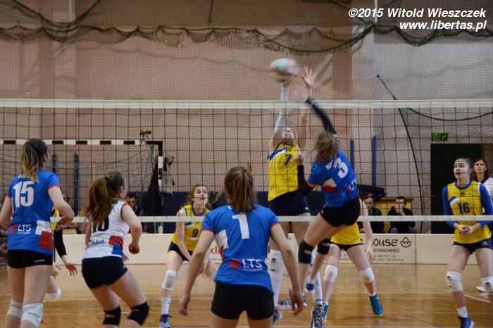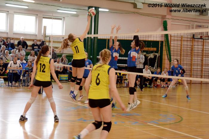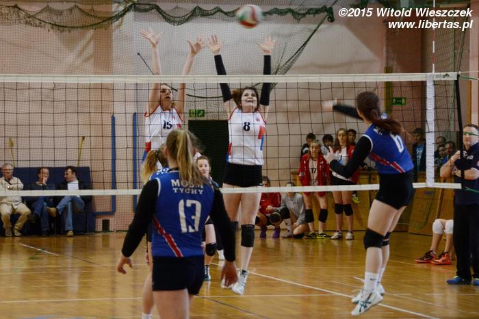 W dniach 18–19 kwietnia 2015 roku odbył się w Tychach turniej półfinałowy siatkarskich mistrzostw Polski w kategorii młodziczek. Rozegrano w sumie sześć bardzo zaciętych meczów (tylko jeden nie skończył się tie-breakiem). Aż do niedzielnych spotkań wszystkie drużyny miały szansę awansu do turnieju finałowego. O wszystkim zadecydowały dwa ostatnie mecze.
