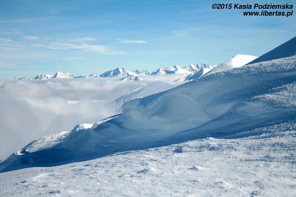 Ruszamy więc dalej, węższą już, ale nadal przyjazną granią, oddzielającą dwie doliny: z lewej Chochołowską, a z prawej Rohacką.