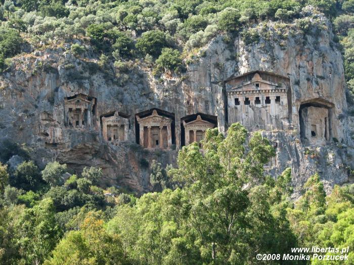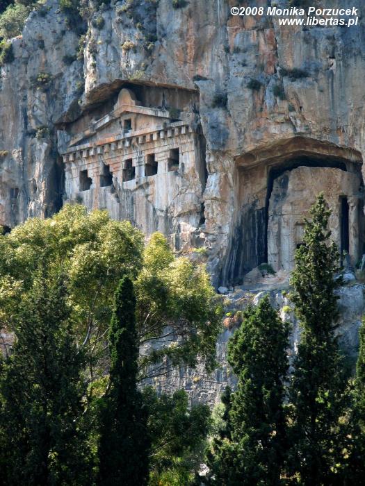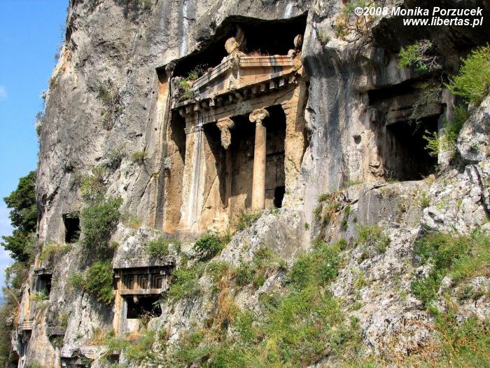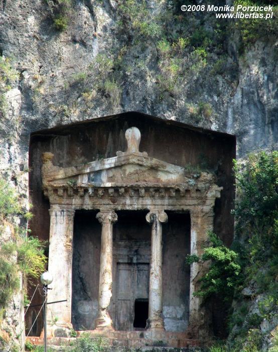 Większość grobowców, tych w Fethiye zostało splądrowanych zapewne przez poszukiwaczy skarbów. Wśród wielu wyróżnia się grób Amyntasa. Wykuty w stylu greckim, swoją fasadą przypomina jońską świątynię. Dokładnie nie wiadomo kim był Amyntas, ale oglądając jego grobowiec dochodzimy do wniosku, że musiał być zamożnym i poważanym obywatelem. Jego niezwykłość przyciąga tym bardziej, że grobowiec w doskonałym stanie przetrwał trzęsienie ziemi, które zniszczyło niemal całe miasto. Wspaniały kunszt i trwałość wzbudza nasz podziw dla budowniczych.