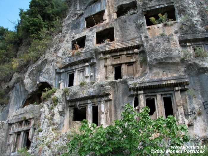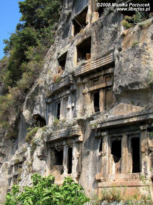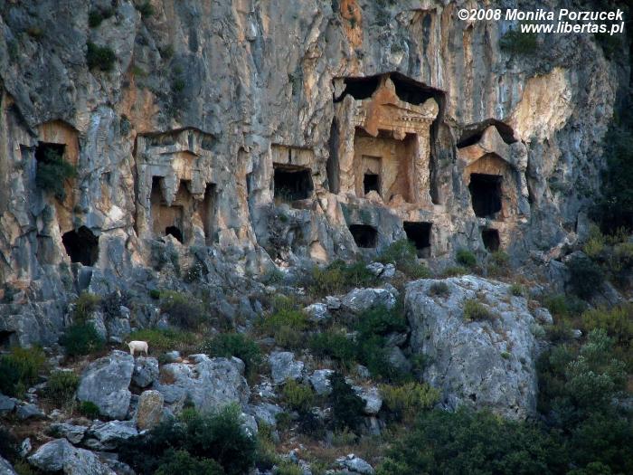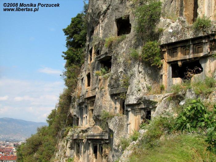 W dzielnicy handlowej odnajdujemy sklep z polskim szyldem „sklep skórzany”. Zaglądając w małe ciasne podwórka staramy się podejrzeć jak żyją mieszkańcy. Ale oprócz tych wszystkich „egzotycznych” niespodzianek przyciągają nas tu tak naprawdę starożytne zabytki Fethiye. Choć nie ma ich zbyt wiele, bo miasto odbudowano po dwóch trzęsieniach ziemi (pierwsze w 1856 roku, drugie w 1957 roku), to jednak nietknięte zostały wykute w stromej skale tajemnicze grobowce. Ich powstanie datuje się na VI – IV wiek p.n.e. Ówcześni mieszkańcy starożytnego Telmessos - najprawdopodobniej Kreteńczycy, którzy przypłynęli z Krety - mieszkali w skromnych drewnianych domach, ale swoje „przyszłe” lokum budowali z trwałych materiałów. Do dziś patrząc na te niezwykłe grobowce zastanawiamy się jak je budowano.