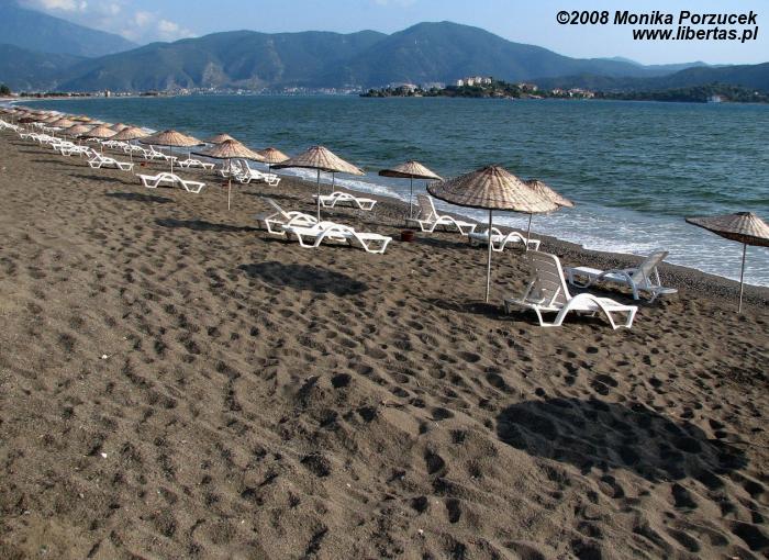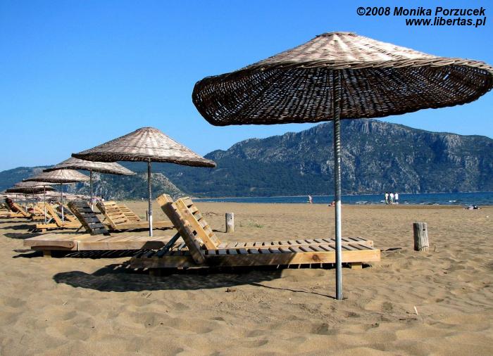Plaża jest naprawdę wspaniała z ciemnym ale delikatnym jak puch piaskiem. Od maja do sierpnia przypływają na plażę żółwie morskie Caretta by złożyć jaja. Tereny łęgowe są zamknięte dla turystów a żółwie otoczone ochroną. Delta rzeki Dalayan jest osłonięta od pełnego morza półwyspem Iztuzu, i to głównie dzięki temu panują tu dogodne warunki dla rozwoju tych morskich stworzeń. Ponadto zabroniono budowania jakichkolwiek obiektów przy samej plaży, wszystkie hotele znajdują się ok. 10 – 12 km od morza w obrębie miasta, wszystko dla ochrony delikatnego ekosystemu.