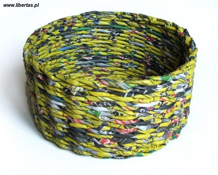 A jeśli nie wiecie w co opakować prezenty (lub jeśli nie macie czasu ani ochoty biec do sklepu po papierową torebkę) to zachęcam do pomysłu przekazanego mi przez Aś, a zamieszczonego na stronie ekorodzice.pl: Okrągły koszyk pleciony z ulotek