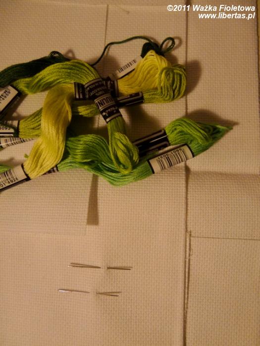 Mulina – w kolorze dowolnym – według własnych upodobań. Ja wybrałam zielenie i żółcie.