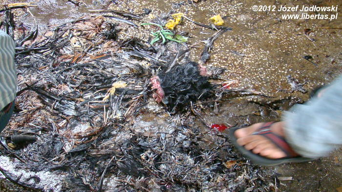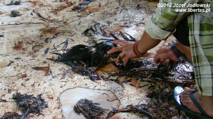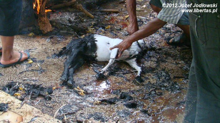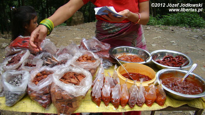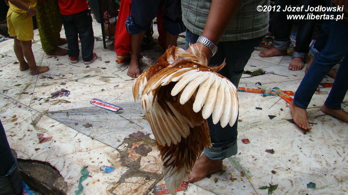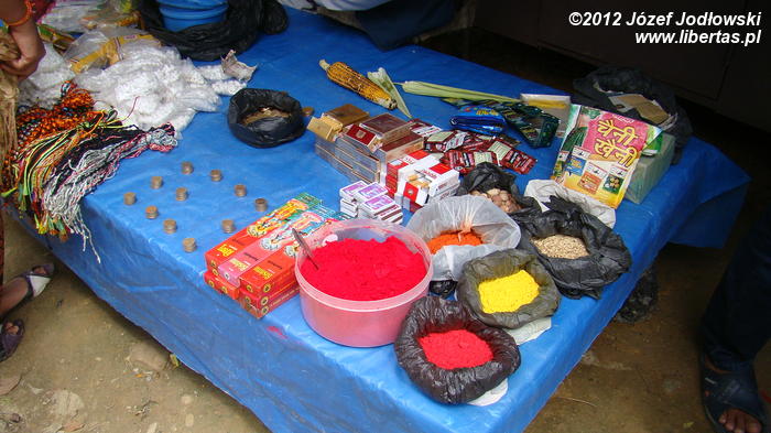 Większość z nich przynosi thali, pozostali pod pachami trzymają drób, nieliczni bogatsi kozy z uwiązanymi na szyjach sznurkami. Miedzy tym dobytkiem biegają radosne dzieci. Może niektóre nie zdają sobie sprawy z czekającego ich „widowiska”.