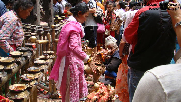 O ważności tego miejsca świadczy choćby tłum pielgrzymów wsiadających do autobusu w Katmandu z torbami i siatkami, z których wystają gdakające głowy kogutów. Spod ławek wyglądają głowy kóz ze sznurkami uwiązanymi u szyi. Nieliczni trzymają w rękach ukwiecone talerzyki, thali lub niewielkie koszyki wypełnione owocami, kwiatami, słodyczami i innymi drobnymi darami, które zostawią w świątyni.