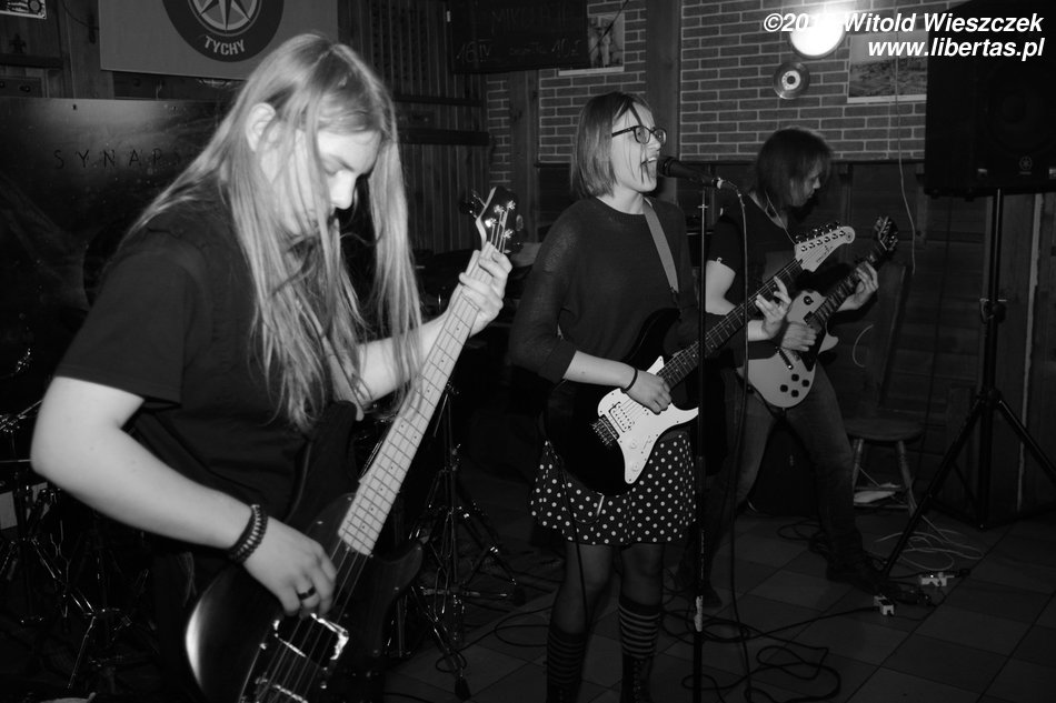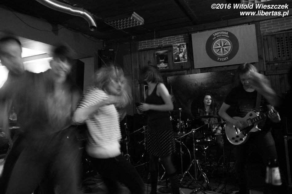 Tawerna Pod Różą Wiatrów istnieje chyba od zawsze. W każdym razie odkąd pamiętam była i wyglądała mniej więcej tak samo. Może zmieniał się czasem układ sal, zniknęła jakaś ściana, ale wystrój i klimat pozostawał. Kiedyś spędzałem tu sporo czasu, a mając naście lat, nawet zagrałem jakiś koncert ze swoim zespołem. Wtedy możliwości były skromniejsze, kupiony za grosze kiepski sprzęt sprzęgał i charczał, że ledwie dało się tego słuchać, ale grać można było. Tradycja nie umarła i dzisiaj również można tu posłuchać początkujących, garażowych kapel. Gwiazdą wieczoru była co prawda doświadczona już w bojach wrocławska Synapsa, ale przed nią szansę zaprezentowania się miał młodziutki tyski zespolik o trudnej do wymówienia nazwie...