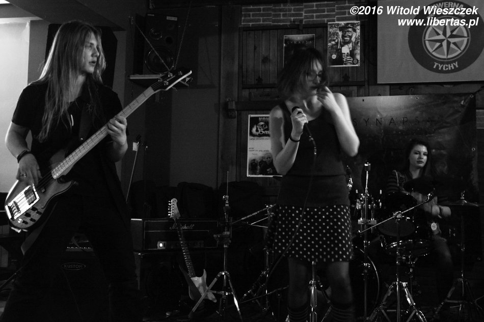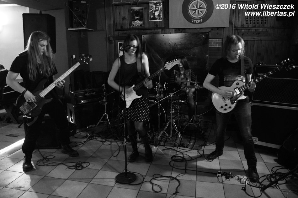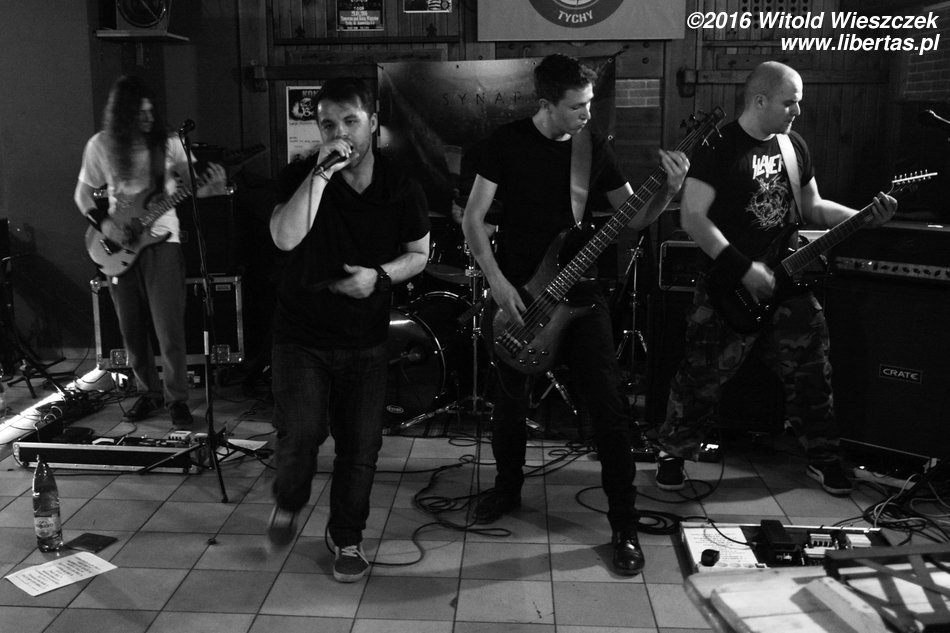 Synapsa to wrocławski zespół grający dla osób lubujących się raczej w cięższym brzmieniu. Gwieździe wieczoru doświadczenia nie brakuje, bo niedawno świętowała swoje dziewiąte urodziny, a na swoim koncie ma już dwie nagrane płyty. W 2009 roku zespół zadebiutował albumem pt. Cienie, a w Tychach promował swoje najnowsze dzieło pt. Confession. Chłopaki nie próżnują, bo w ramach rozpoczętej w październiku ubiegłego roku trasy koncertowej zaplanowano ponad 60 koncertów! W Tychach Synapsa zagrała w składzie: