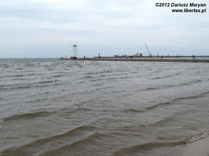 Po części militarnej zwiedzania udaliśmy się wprost na plażę która zaczynała się przy Falochronie Zachodnim o długości około 350 metrów, wybudowanym w latach 1818-1923, na końcu którego dumnie wznosi się symbol miasta Stawa Młyny. Piękny wiatraczek spełnia po dziś dzień rolę punktu nawigacyjnego.