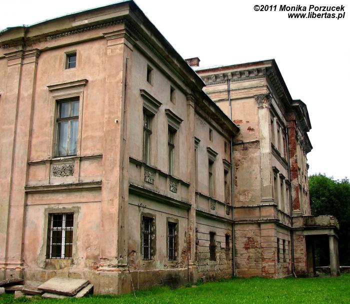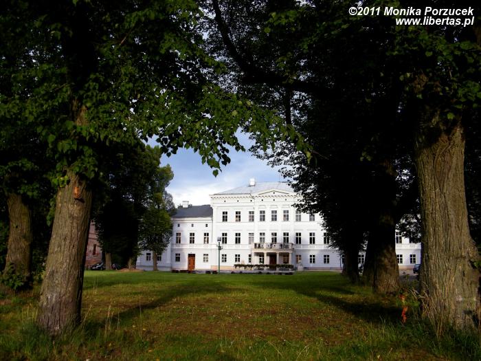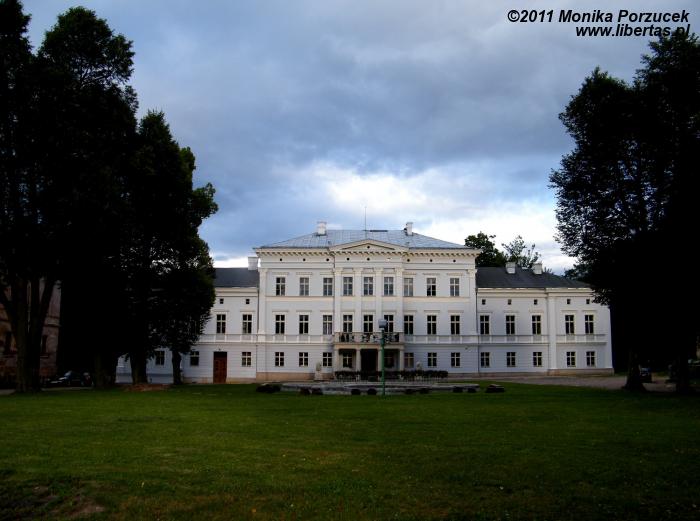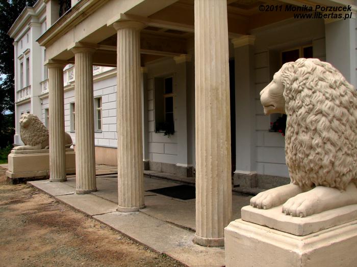 Pałacowych wnętrz nie zwiedzałam, na miejsce przybyłam bardzo późnym popołudniem. Przywitała mnie pięknie odrestaurowana frontowa elewacja. Przez okna nie byłam w stanie dociec w jakim stanie są wnętrza, ale wiem, że obecnie można je już oglądać.