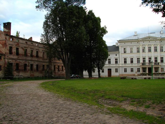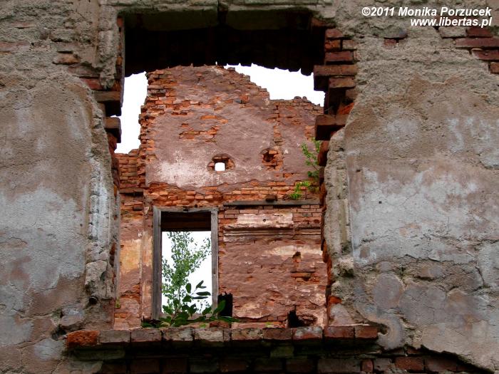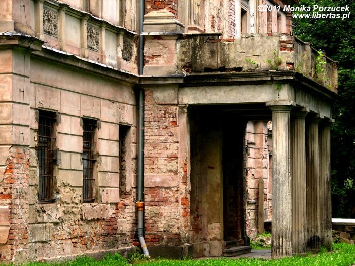 Ponieważ oglądałam pałac jedynie z zewnątrz, mojej uwadze nie uszła tylna, nieodremontowana jeszcze część pałacu oraz znajdujące się w runie obiekty sąsiadujące z pałacem. Niestety wstęp na ich teren jest również zamknięty, co zrozumiałe jest z uwagi na bezpieczeństwo. Z uwagi na upływ czasu i zbliżający się wieczór nie było też czasu na poszukiwanie ukrytych skrzyń... Trzeba będzie tam kiedyś wrócić.