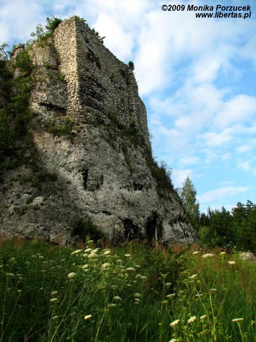 Druga zakłada, że fundatorem był książę Władysław Opolczyk a strażnica wzniesiona została dla obrony terenów lennych księcia. Zamek górny zajmował najprawdopodobniej 165 metrów kwadratowych, istniało też gospodarcze podzamcze u podnóża skały. Uważa się, że w latach 1426 do 1454 budowla należała do Mikołaja Kornicza zwanego Siestrzeńcem. Był on rycerzem-rozbójnikiem, który napadał i rabował wyłącznie możnowładców i bogatych kupców. W związku ze swoją działalnością zyskał sympatię ze strony chłopów i biedoty. Wszelkie próby ukrócenia tego procederu nie udawały się. W końcu w 1432 roku na zjeździe panów śląskich i polskich w Będzinie Kornicz został uznany za wichrzyciela. Za jego schwytanie wyznaczono nagrodę. Jedne przekazy mówią, że został wkrótce potem złapany i stracony a inne, że mimo to przez następne 20 lat spokojnie rabował przejezdnych bogaczy. Do dziś krążą legendy o bajecznych skarbach ukrytych najprawdopodobniej w zamkowej studni. Istnieje ona do dziś, zasypana jest kamieniami a szukać jej trzeba w pobliżu skałki. Czasem w mgliste poranki pojawia się nad nią cień postaci z kapturem na głowie. To Kornicz pilnujący swoich skarbów.