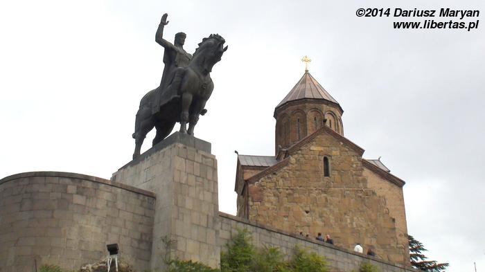 Kolejnym celem zwiedzania był ormiański kościół Eczmiadzyn znajdujący tuż obok stacji metra Alvabari. Tego dnia natrafiliśmy na ślub, jak się później okazało pierwszy z wielu. Idąc dalej, dotarliśmy do położonego na skarpie tuż obok rzeki Kury kościoła Metechi. Świątynia została zbudowana w XIII wielu. Głównym atutem kościoła jest piękne położenie, ponieważ wnętrze nie jest zbyt okazałe. Tuż obok znajduje się pomnik króla Wachtanga I Gorgasali, postawiony w tym miejscu w 1967 roku.