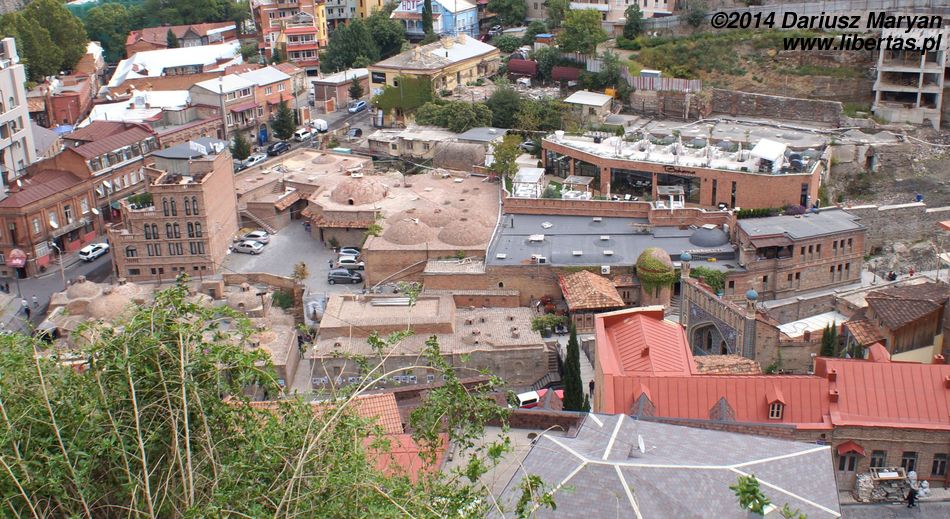 Ostatnim punktem tego dnia była wizyta w słynnych nie tylko w Tbilisi łaźniach siarkowych. Na starym mieście jest ich kilka, wszystkie korzystają z tego samego ujęcia termalnej wody siarkowej. Wybraliśmy banię leżącą w samym środku kompleksu. Wstęp obejmujący godzinę relaksu w prywatnej kabinie składającej się z basenu z gorącą wodą i prysznica kosztował 30 lari. Za 20 lari można było zamówić dodatkowo masaż. Wnętrze kabiny jest podobne do tego, co spotyka się w tureckim hammamie. W ciągu tej godziny całe trudy tego intensywnego dnia odpłynęły w siną dal.