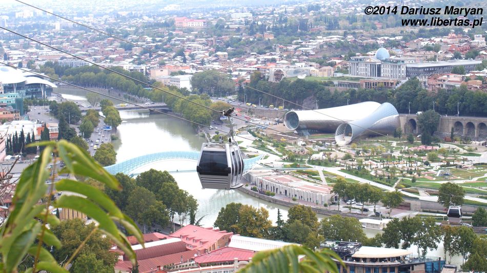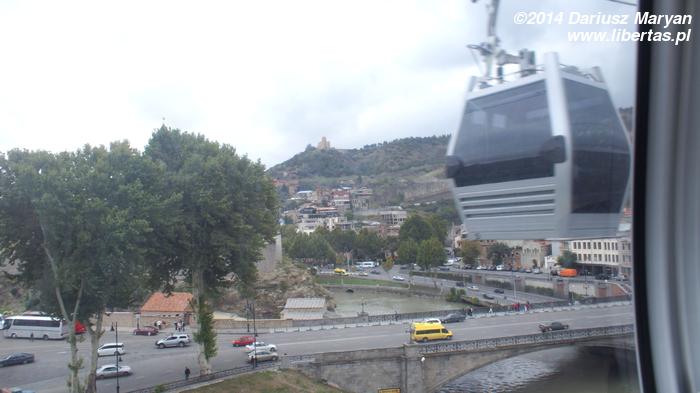 Kolejką linową wjechaliśmy na wzgórze, gdzie znajduje się twierdza Narikala. Za przejazd można zapłacić kartą na metro. Z wagonika powoli wspinającego się ku górze można obserwować w całej krasie zabudowania Starego Miasta. Bez wątpienia jest to najpiękniejsza część Tbilisi. Z drugiej strony widać Park Europejski i Pałac Prezydencki.