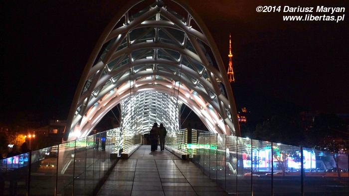 Po wyjściu z bani w doskonałych humorach zatoczyliśmy wielki łuk w drodze do hostelu. Nie mogliśmy sobie odmówić przyjemności przejścia przez mieniący się światłem Most Pokoju (zwany przez miejscowych wielką podpaską).