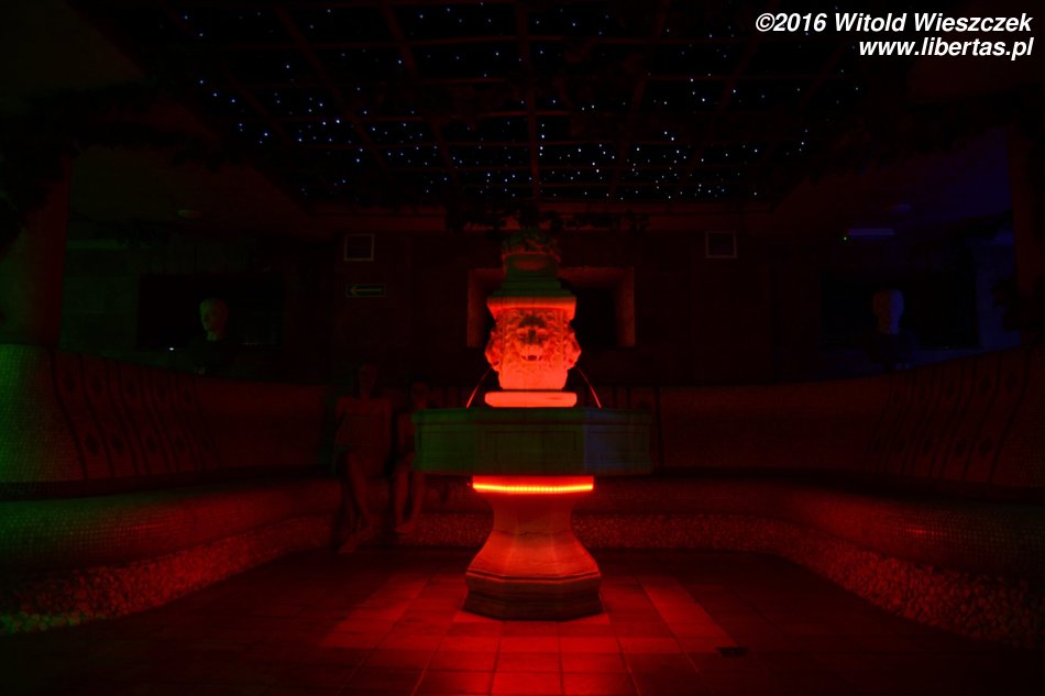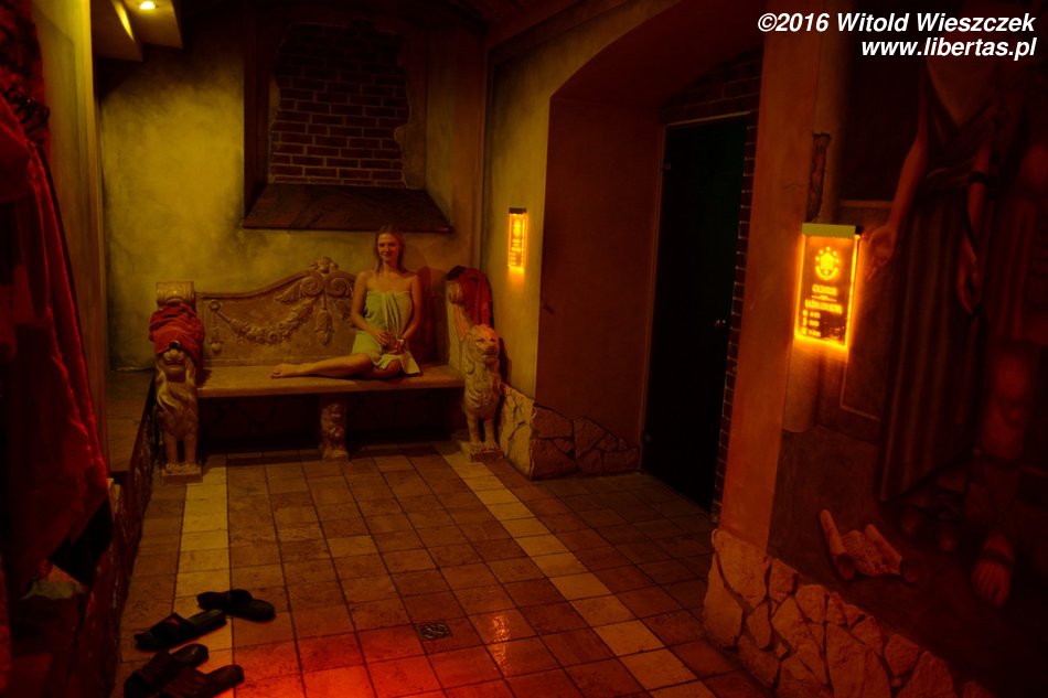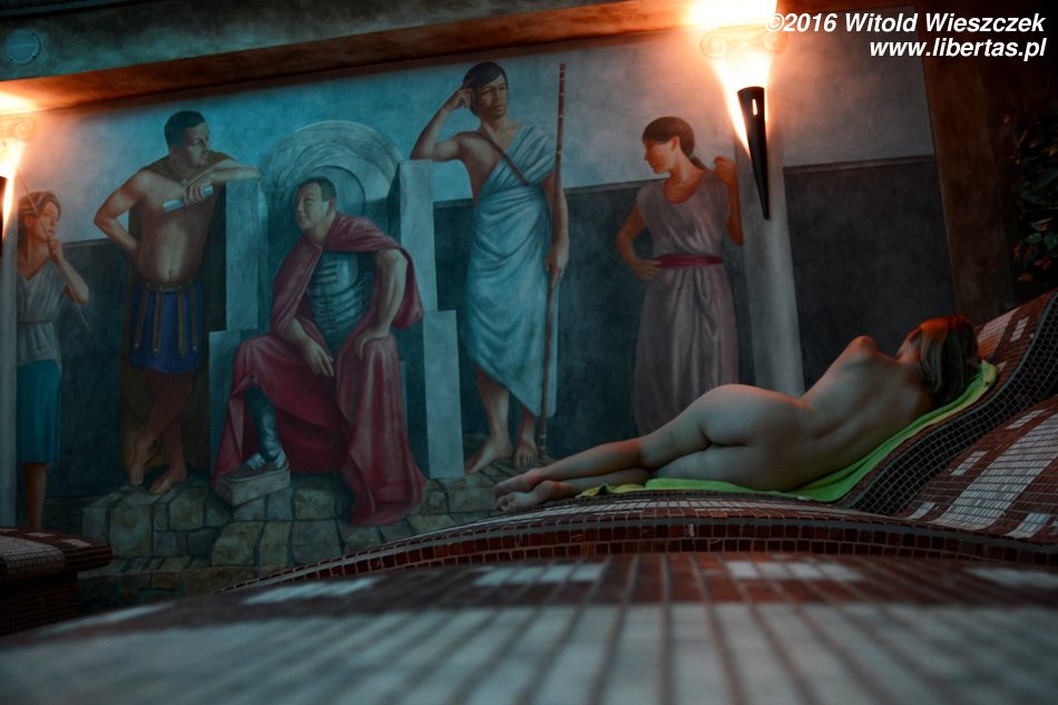 Pan prezes robi nam zaszczyt i osobiście oprowadza po swoich włościach. Widać, że to nie jest tylko biznes, to jego pasja. Opowiada o termach tak, jak niektórzy opowiadają o swoich dzieciach. Ma powody do dumy. To jedyny taki kompleks w kraju. Nie sauny przy basenie czy parku wodnym, nie dodatek, ale serce i najważniejsza część całego przedsięwzięcia. Wzorowana na pompejańskich termach Świątynia Zdrowia i Energii – jak kilkukrotnie powtarza. I rzeczywiście jest to świątynia. Począwszy od zewnętrznej bryły budynku, poprzez inspirowane antycznymi wzorami pomieszczenia, aż po zdobiące ściany malowidła i rzeźby. Czasem wystrój może nawet niebezpiecznie zbliża się do kiczu, ale po dłuższej chwili zastanowienia dochodzę do wniosku, że trudno byłoby urządzić tę świątynię lepiej! Przypominam sobie naukę łaciny i greki, albumy pełne antycznych budowli, swój dawny sentyment do starożytności i konstatuję, że przecież nieraz, spacerując po ruinach dawnych miast, myślałem sobie, dlaczego nikt chociaż jednego z nich nie odbuduje? Pamiętam, jak np. w Butrincie przechodziłem obok pozostałości po takiej rzymskiej łaźni, z której zachowały się tylko resztki hypocaustum i próbowałem sobie wyobrazić, jak to mogło wyglądać. A teraz tutaj jestem! W prawdziwych rzymskich łaźniach. Co prawda przy wejściu otrzymujemy transponder, przechodzimy przez nowoczesne bramki i w magiczny sposób otwieramy swoje szafki... Ale przy odrobinie wyobraźni już po chwili przenosimy się do innego świata...
