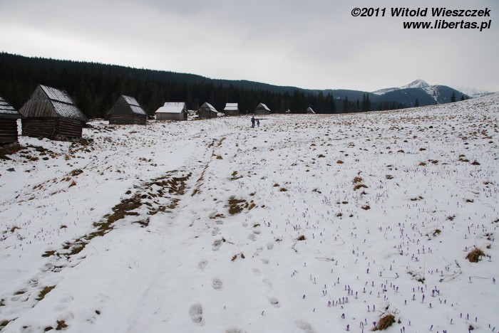 Początek zielonego i czerwonego szlaku odnajdziemy idąc główną drogą od przystanku PKS w dół, w kierunku Zakopanego. Mniej więcej po 250 metrach, po lewej stronie asfaltowej drogi znajdziemy dobrze oznaczoną ścieżkę, która poprowadzi nas w górę (początkowo stromo, później już łagodnie). Jeśli przyjedziemy tu na początku wiosny, to po drodze mamy szansę zobaczyć piękne, fioletowe dywany krokusów, z których kiedyś Toporowa Cyrhla słynęła.