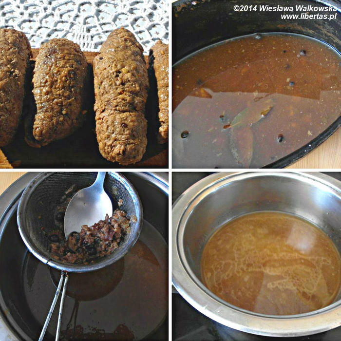 Sos, który został z pieczenia, przecedź przez sitko, a jeśli jest taka konieczność go odparuj. Do klarownego sosu, który powinien mieć lekko brązową barwę, dodaj łyżkę mąki rozpuszczonej w zimnej wodzie. Dodając, energicznie mieszaj, aby nie powstały grudki.