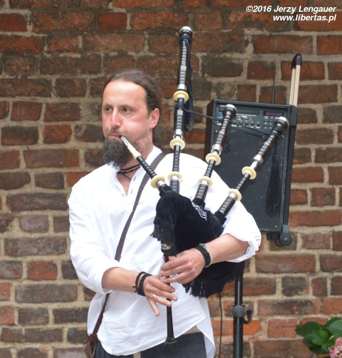 Pokonfabuluję zatem. Przywędrowali znad Bałtyku. Być może dotarli jakimś hanzeatyckim statkiem. Znaleźli w pewnym momencie dopływ Łyny. Po drodze grali na dziedzińcach zamkowych. Czy spławili się Gubrem? Kogo musieli pytać o zgodę? Duchownego, czy zbrojnego? Ile godzin, czy dni grywali przed zamkniętą kratą pod murami w smrodzie gnoju, odgłosów zwierząt, pokrzykiwaniu przekupek i głośnych wyzwisk jakiegoś knechta? A przecież grywali na ulicach i placach wielkich miast i dziedzińcach ogromnych zamków. Zdarzało się pewnie zaproszenie do komnat. Najpewniej i najszybciej było podróżować rzekami. Kraj Loary oczywiście. Stamtąd już blisko do Bretanii, kraju wielokulturowego. Być może to był końcowy etap ich podróży po kontynentalnej Europie. Nie wykluczone, że pogrywali wraz z pasterzami z Montaillou, wioski heretyków, cudownie opisanej przez Ladurie. Mogli stamtąd wyruszyć na zimowe pastwiska do Katalonii, zaś wiosną przeprawić się na Wyspy Brytyjskie. Dudy przecież. Różnorodność muzyczna. Pobrzmiewające echa komnat zamkowych, ale i pasterskich ognisk. Prawie że słychać szum fal obijających się o szkockie zimne, wietrzne wybrzeża…